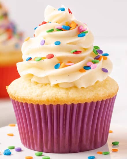 - All purpose flour – I find there’s no need to use specialty flours (like cake flour) for this recipe, the cupcakes are plenty soft and fluffy without it.