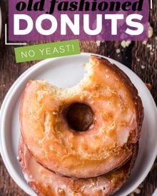 Golden brown on the outside and soft and fluffy on the inside, these Old Fashioned Donuts are made with simple ingredients and NO yeast!ย Perfectly fried with nooks and crannies to hold the sweet vanilla glaze!