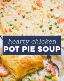 All the amazing savory flavors of a classic chicken pot pie, turned into a deliciously creamy, chowder-like soup! Chicken pot pie soup is a hearty dinner idea the whole family will love.