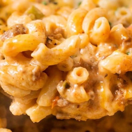 I love how ultra-creamy this dish is… and I’m such a sucker for the great flavor combination of the cheese with the spicy meat mixture and the classic pasta.