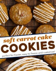 These soft and tender carrot cake cookies are perfect with just a dusting of powdered sugar, or a decadent drizzle of cream cheese frosting! They’re so moist and the perfect Easter or Spring dessert!