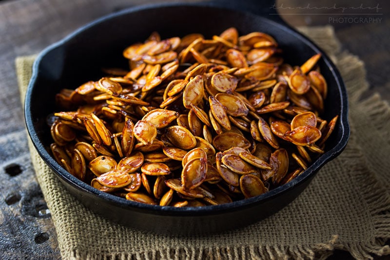 Roasting the pumpkin seeds is the best part of carving pumpkins! Love this version with the sweet and spicy!