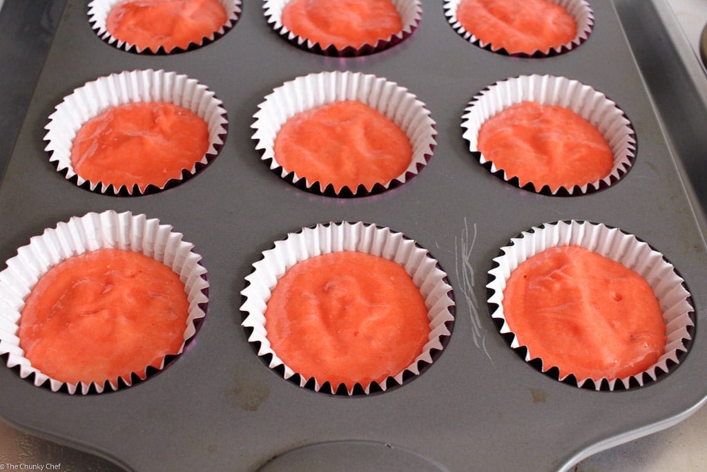 I will say, these are not your typical cupcakes… they have a big strawberry flavor, and the frosting can be as tart and lemon-y as you’d like.