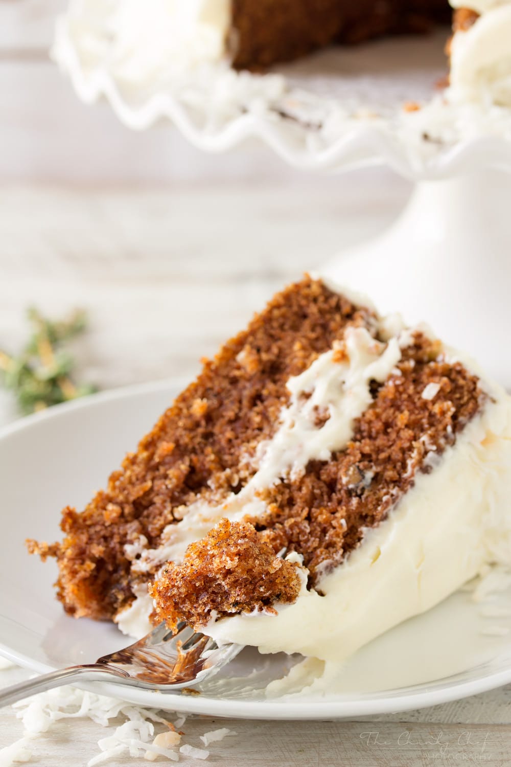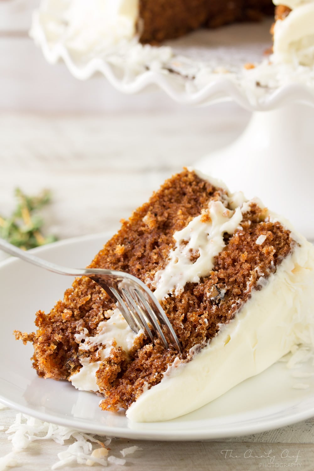 Deemed a seasonal cake, carrot cake has graced many a Spring table. ย I’m here to say that this cake, it should be a year-round dessert! ย So incredibly soft and moist, and topped with the most luxurious frosting… you won’t want to stop eating it!